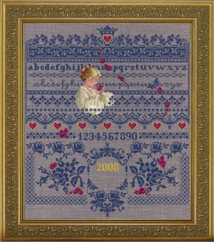 This sampler records your special time, as the roses fall.