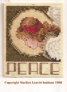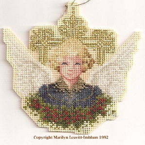 When we put out a request in 2011 for photos of the stitched free designs, a stitcher named Cheryl Buckler sent in a complete set with splendid pictures. She stitched them on perforated paper and backed each one with a light cream Christmas fabric. She changed colors on some of the designs, but this is a wonderful way to see all the designs in one place. We added the copyright info including the date. You can click on the image to go to that design's page.